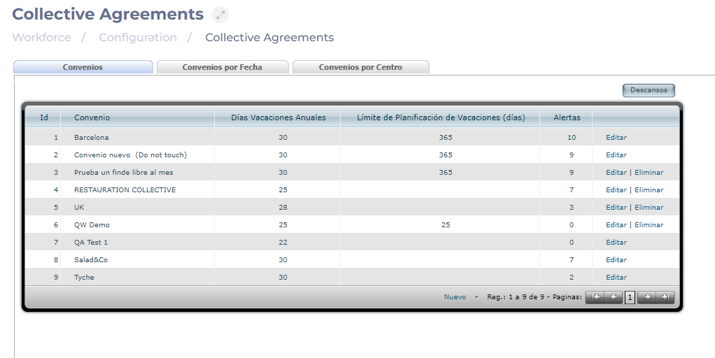 - Pour modifier un accord existant, sélectionnez Modifier dans la ligne correspondant à l'accord.