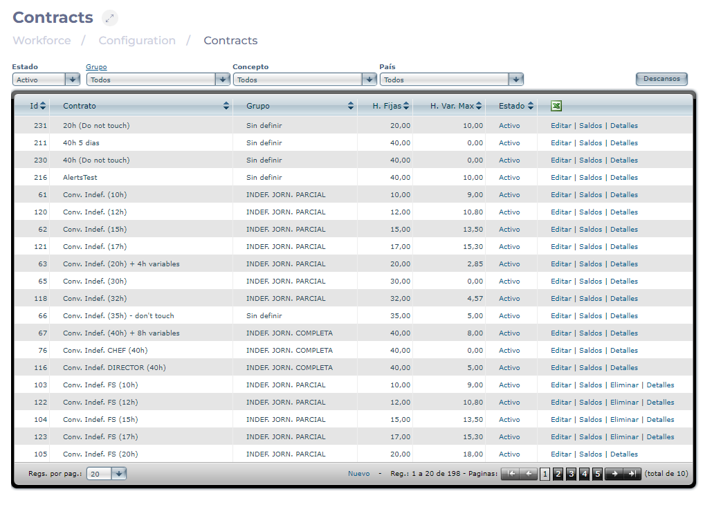 - Pour modifier un contrat existant, sélectionnez Modifier dans la ligne correspondant au contrat.
