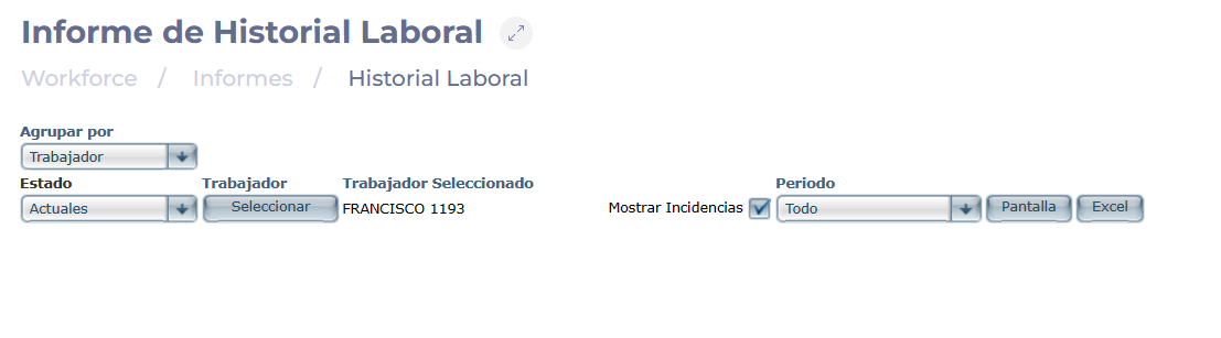 - Utilisez l'icône de la loupe ? ou identifiez, dans la liste, le rapport 160 - Workforce - Historique personnel.