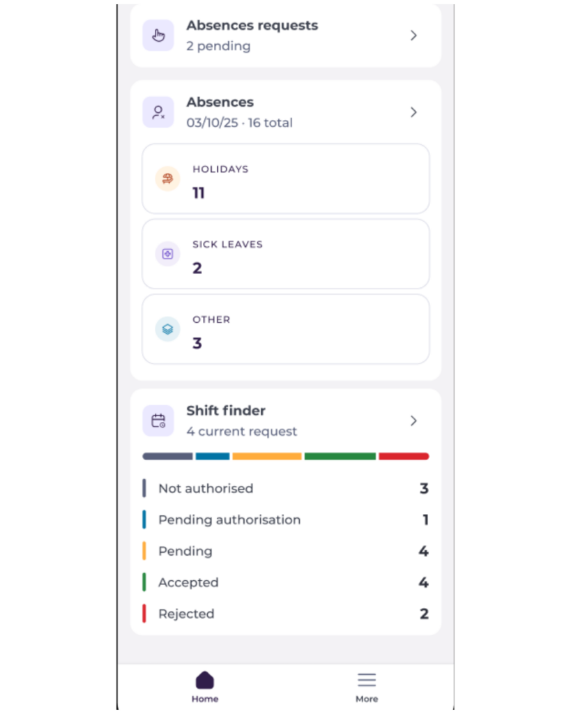 - Absences Requests: Shows the number of pending absence requests awaiting action.
