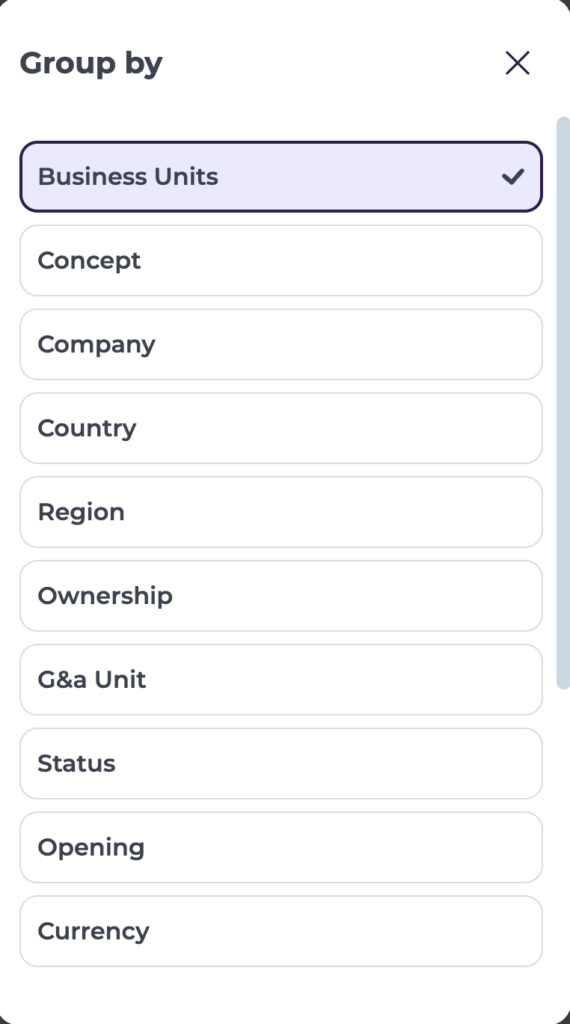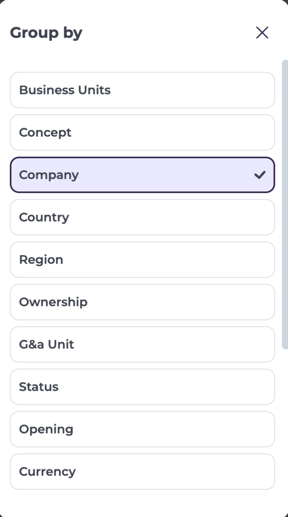 - Choose a different grouping option (for example, switch from Business unit to Company).