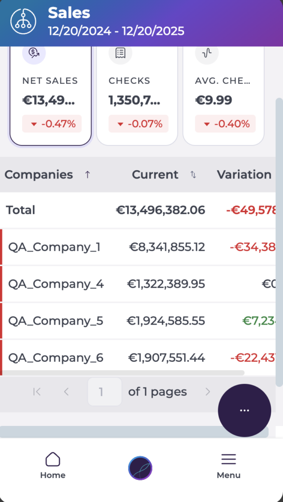 - The value of the currently selected metric (Net Sales, Checks or Average Check).