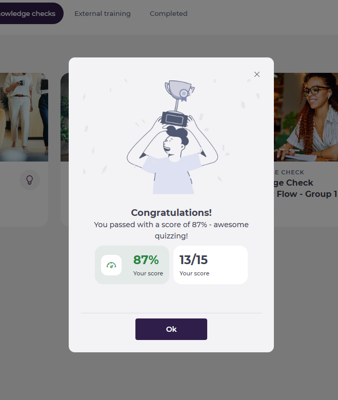 Note: This setting is optional and may not be active for every Knowledge Check, it depends on how your managers have configured the activity.