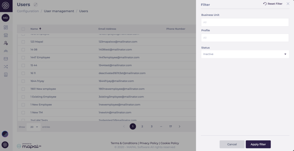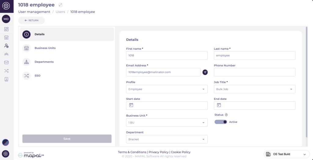 - The employee is correctly linked to the Mapal OS User (usually via email or an internal identifier).