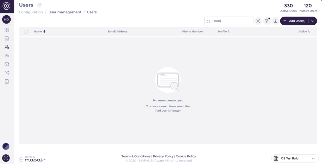 - Create a new user if appropriate (for details, see Add a new user in Mapal OS), or ask your internal admin to do so. Make sure you use the same email address the user expects to use when logging in.